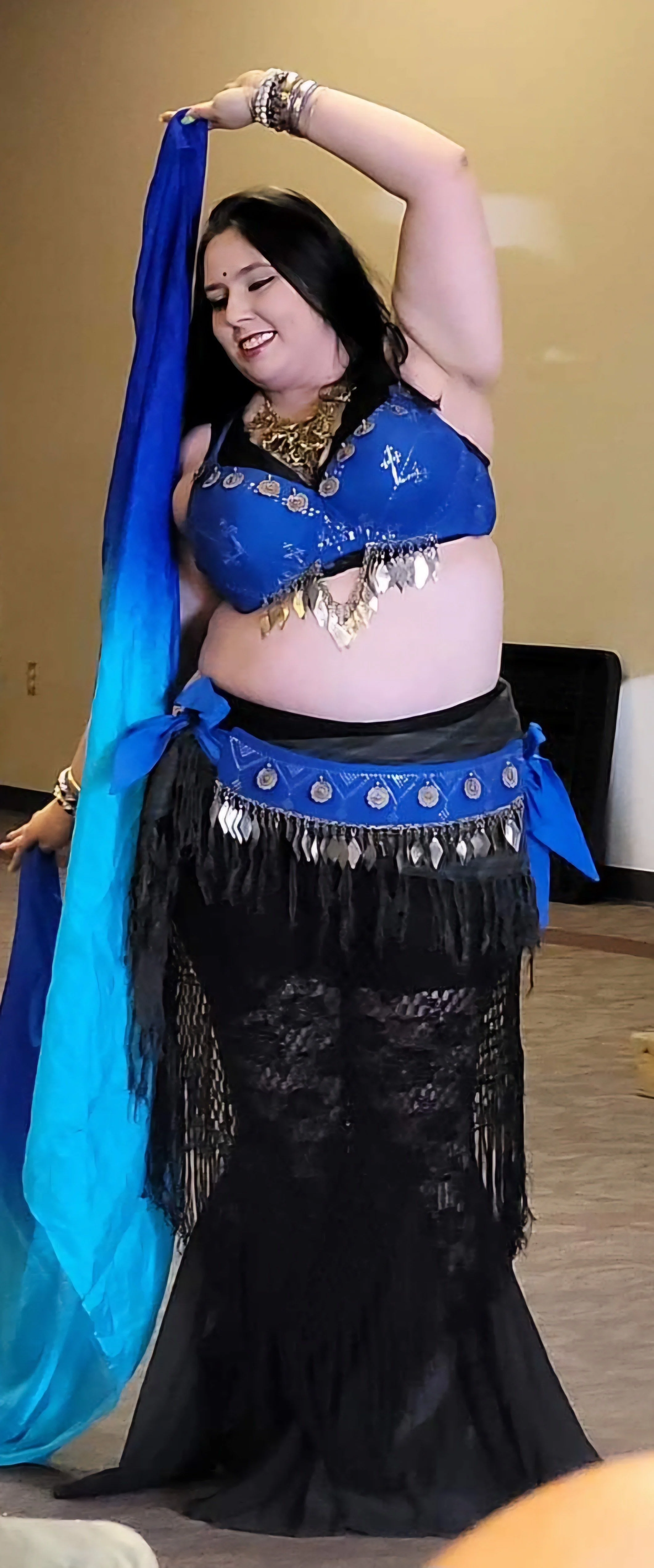 Today, I perform in Areena Estul's Constellation Collective Troupe, the Ecdysis Dance Troupe, and consider myself an artist, a professional belly dancer, and a student. I approach each class I take, each choreography I learn/create, and each workshop I participate in/teach with cultural humility and respect. I understand that I am a steward for cultural expression that is not my own. I am mindful of honoring and speaking the names of the dancers and teachers who generously shared thier practice as I create and transform the dance.